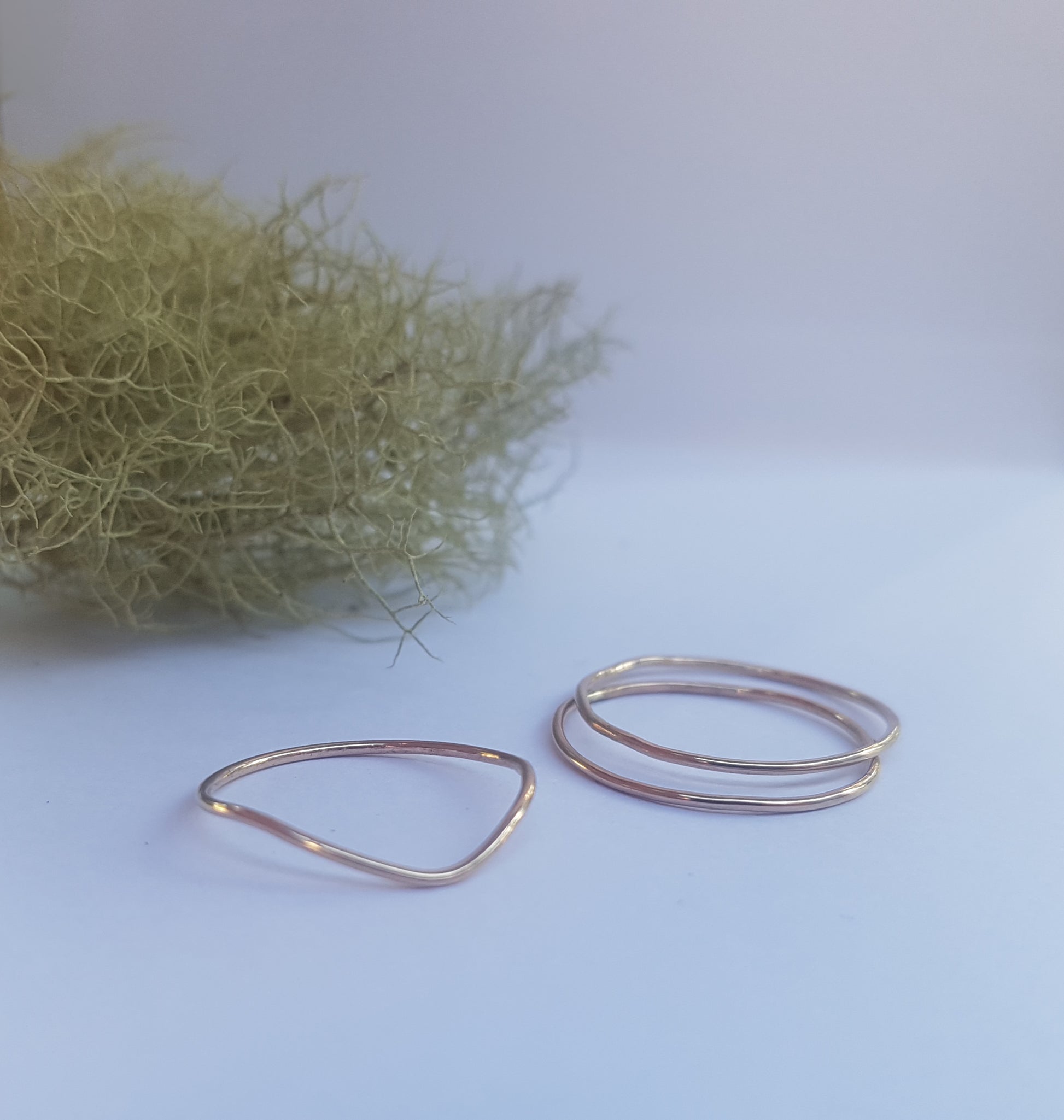 Dainty 14k Gold filled stacking ring in plain or chevron blend