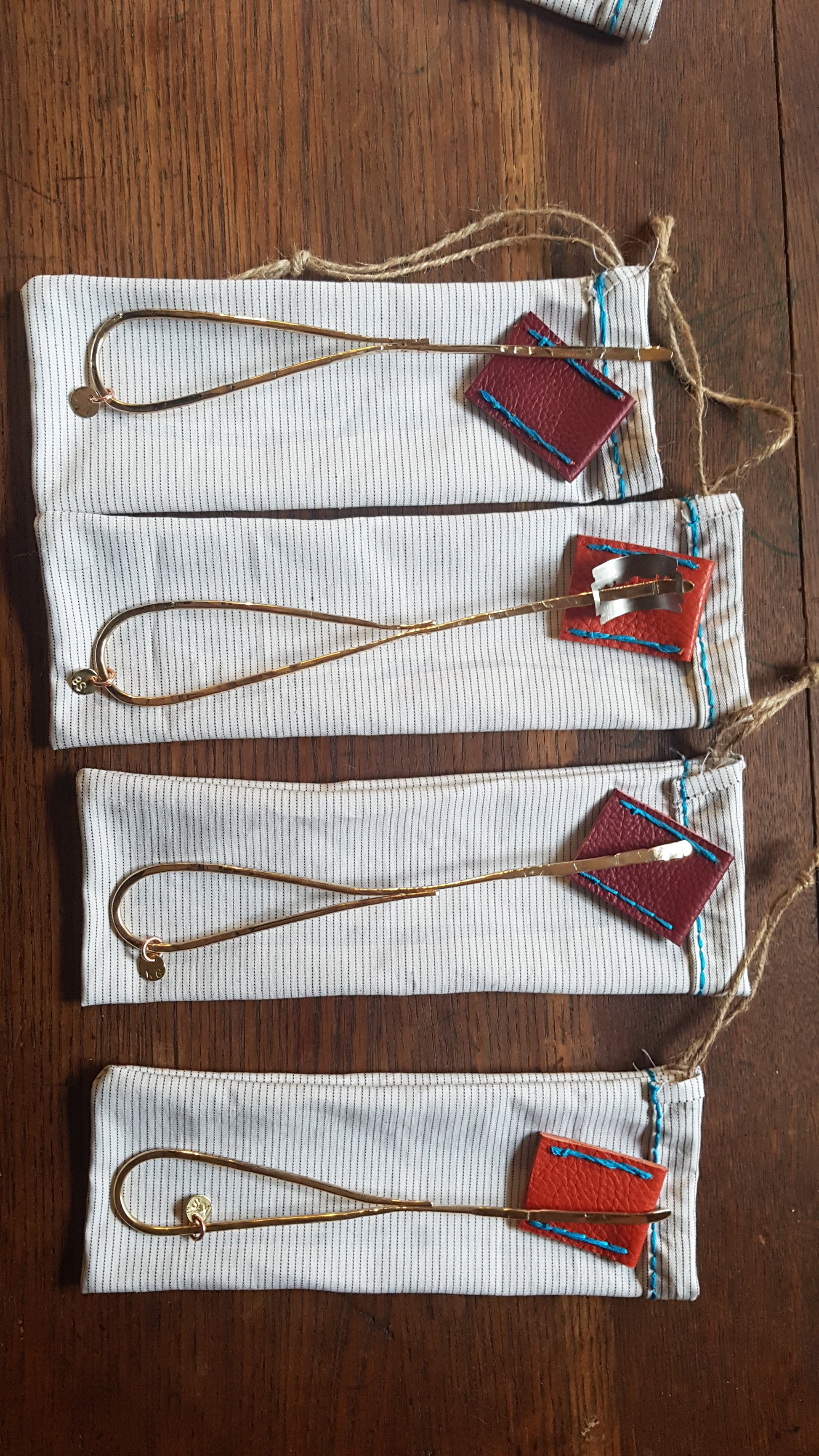hand sewn storage bag with leather blade cover