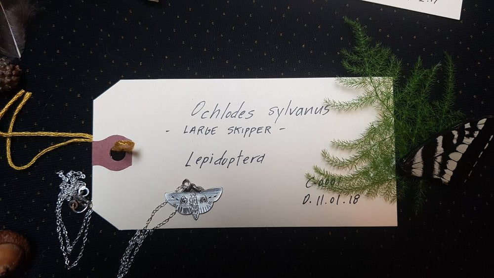 Sterling Silver hand-cut pendant inspired by Large Skipper Moth