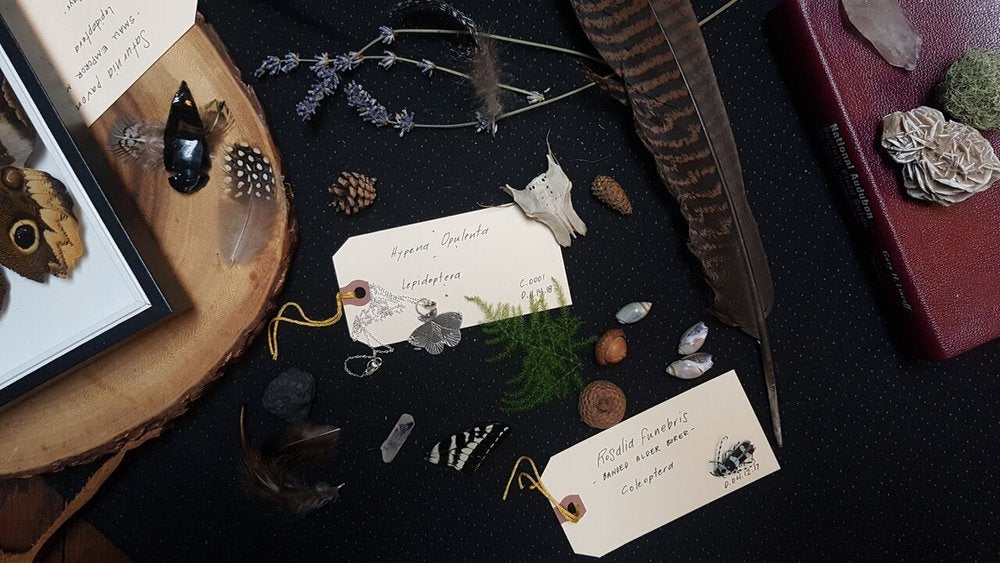 Sterling silver hand-cut and stamped moth inspired by Hypena opulenta moth